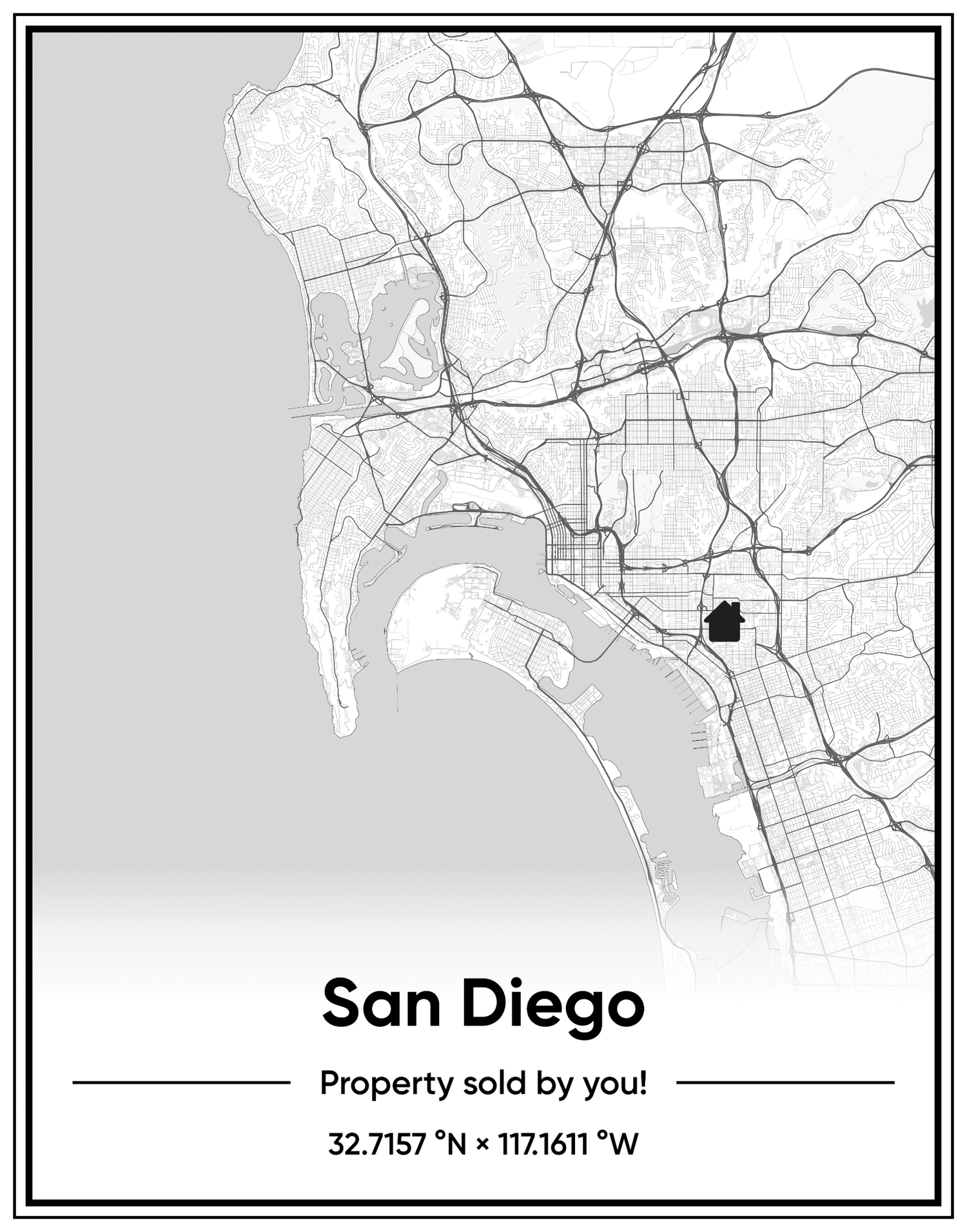 Make a lasting impression by creating a custom framed map of your client's new city or suburb.